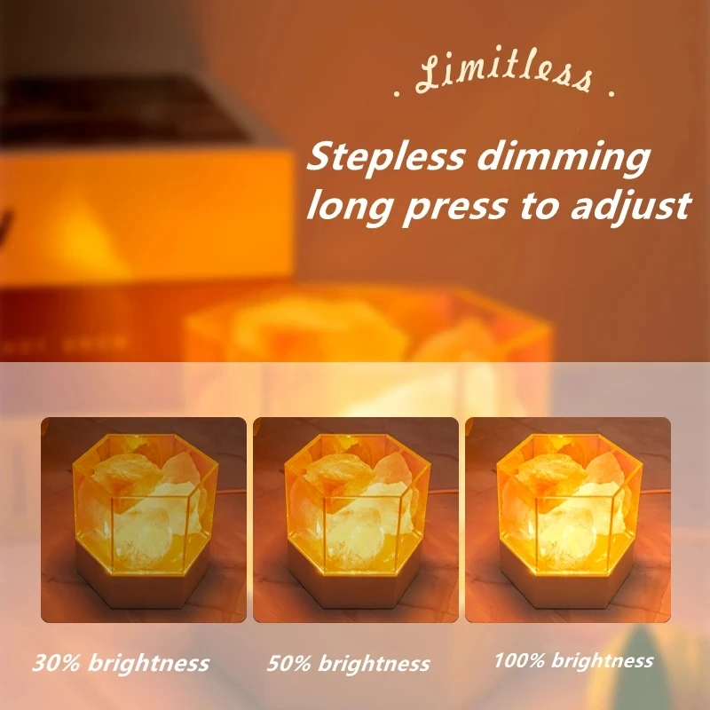 The built-in LED bulb offers long-lasting illumination in multiple soft hues, making it ideal for nighttime relaxation or as a mood-enhancing accent piece. Its ABS body provides modern durability while the crystal salt core adds a natural, calming touch.